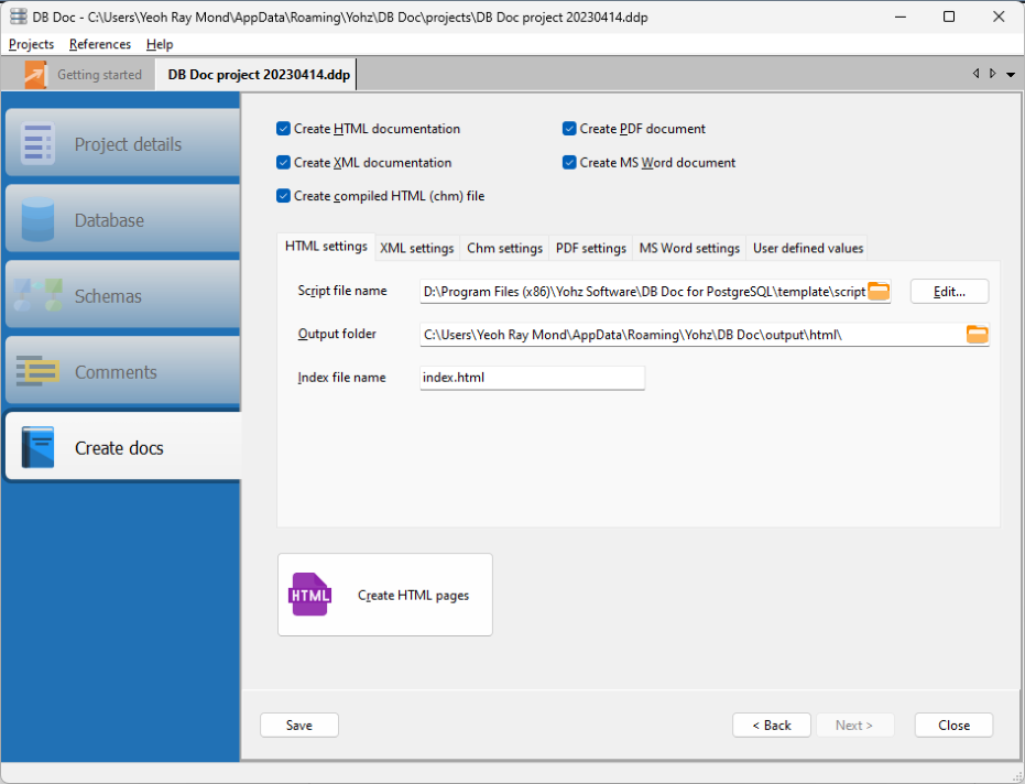 You can then run this DB Doc project using the DB Doc command line interface, and your documents will be generated using