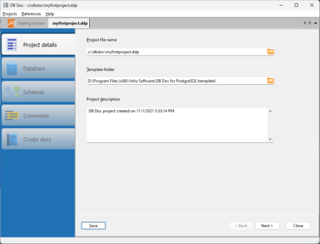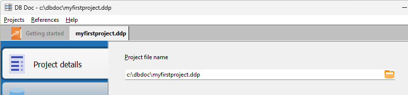 In the example above, we saved our project as myfirstproject.dpp in the c:\dbdoc\ folder.