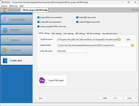 create PDF, HTML, XML, DOCX, and CHM documentation