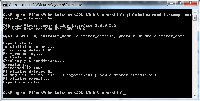The SQL Blob Viewer Professional Edition license includes a command line interface (SQLBlobViewerViewerCmd.exe)