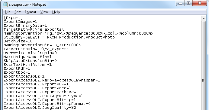 use to automate your export tasks. To start off, first define an export using the Export Wizard in the SQL Image Viewer