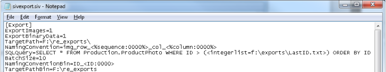Like in option 2 above, SQL Image Viewer will use the value in the f:\exports\LastID.txt file in the query. It is also