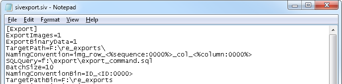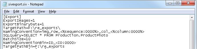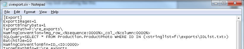 Image Viewer use the command in that file when it runs the export. You do this by modifying the SQL Image