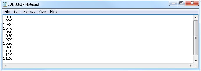 the query. In the IDList.txt file, each line should contain only a single value e.g.
