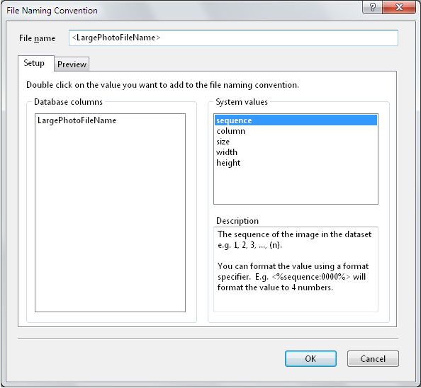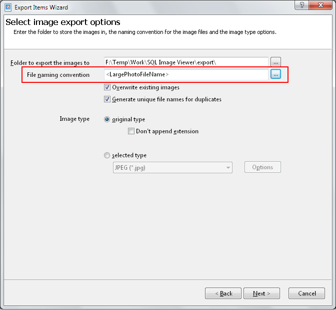 You want to name the exported files using the values in the LargePhotoFileName column. In the Export Items Wizard,
