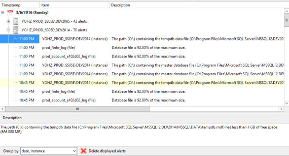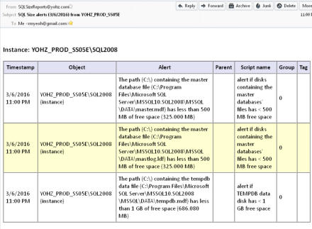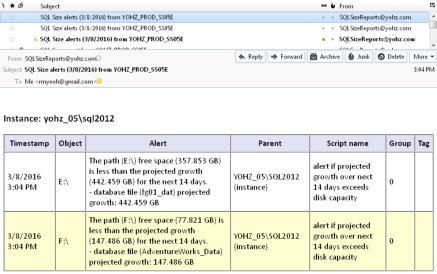 SQL Size can raise alerts when database growth exceeds expectations. Alerts can be sent via emails, and are also logged
