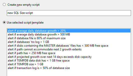 In addition, SQL Size is shipped with over 10 template scripts you can use immediately, or modified to meet your