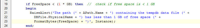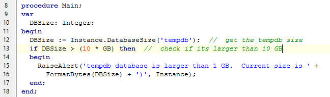 only raise the alert if the tempdb size was larger than 10 GB. Simply change the value in the comparison statement,