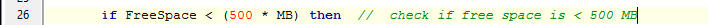 If you wanted to raise the alert only if the disk space was less than 500 MB, simply change that line to this: