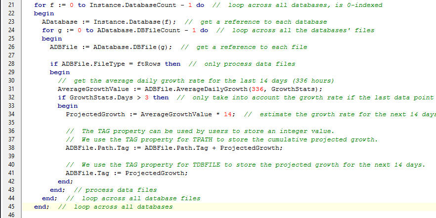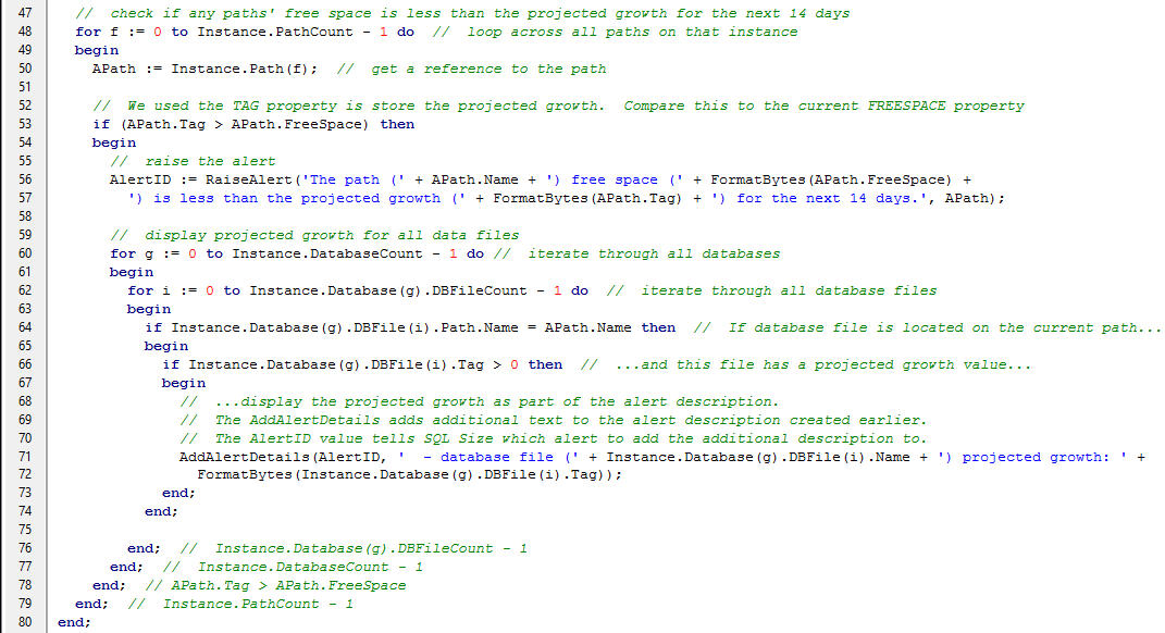 Once we've collected the projected growth for all the databases', we then make the checks. We iterate over all the paths