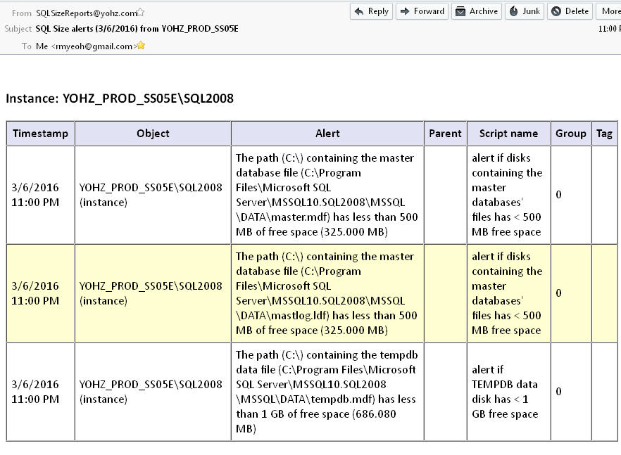 Now whenever the size of TEMPDB exceeds 10 GB, an alert is sent to your users.