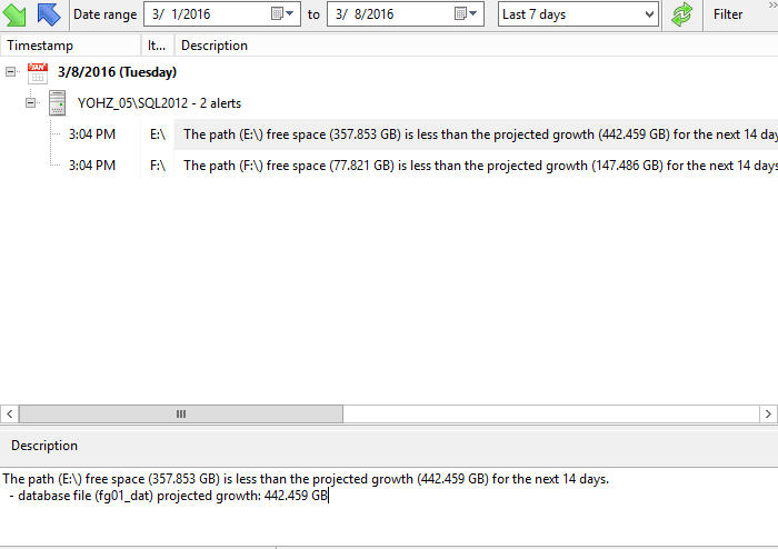 database growth! Again, a template is available that raises an alert if the projected data file growth for all databases' in