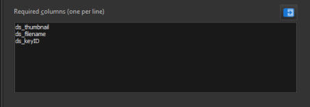 The Default prefix is used when your search query does not contain a SELECT list of columns to retrieve. The Required columns list is used every time you run a search query - if your SELECT list does not include the columns in the Required columns list, it will be added automatically.