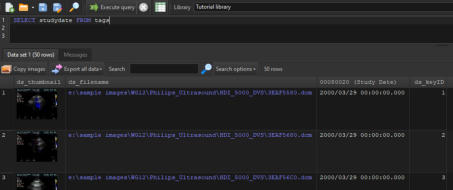 To define the default prefix when your search query does not contain a SELECT list, you need to first open the Preferenceswindow by clicking on the Application > Preferences item from the main menu.In the Preferences window, select the SQL shortcuts tab.The default prefix is the SELECT list that is added to your search query when no SELECT list is entered. For e.g. if you enteredDICOM Search expands this to the following (assuming the default settings are used):SELECT ds_thumbnail, ds_filename, ds_keyID FROM tags WHERE …ds_thumbnail stores the image thumbnails, ds_filenamestores the source image file name, and ds_keyID is an internal key value that is used by the internal DICOM file browser. You can add additional columns to the default prefix if you need them to be always part of your search results. For e.g. if you always want the study date (0008,0020) to be displayed, enter the following value for Default prefix:SELECT ds_thumbnail, ds_filename, ds_keyID, [00080020] FROM tagsThe required columns is the list of columns that DICOM Search will always add to our search query. Given these defaults:If we entered the following in our search query:DICOM Search automatically adds the ds_thumbnail, ds_filename, and ds_keyID columns to our search results.If you don’t want to display the thumbnails and filenames, you can remove the ds_thumbnail and ds_filename values from the list of required columns. If you don’t want to use the DICOM file browser, you can remove the ds_keyID value.