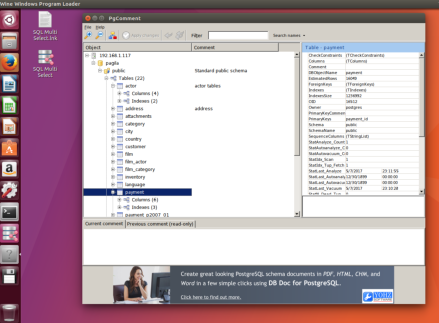 shows PgComment running on Wine 2.0.1 on Ubuntu 17.04 LTS.