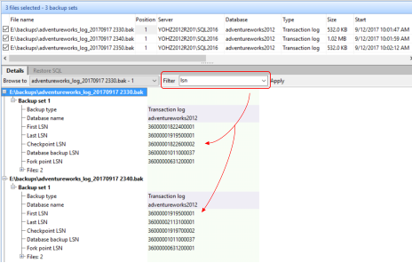 RESTORE FILELISTONLY, or RESTORE HEADERONLY
